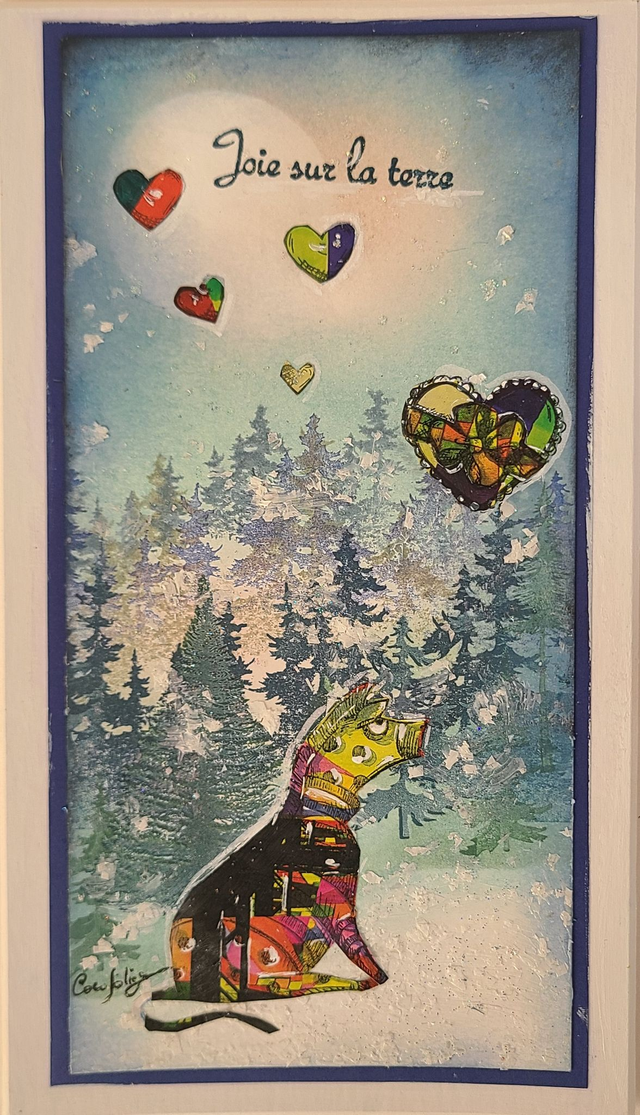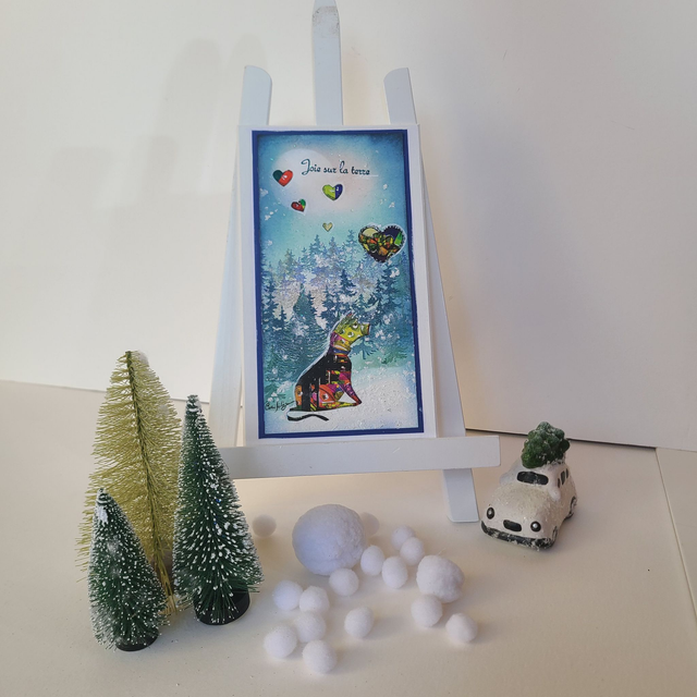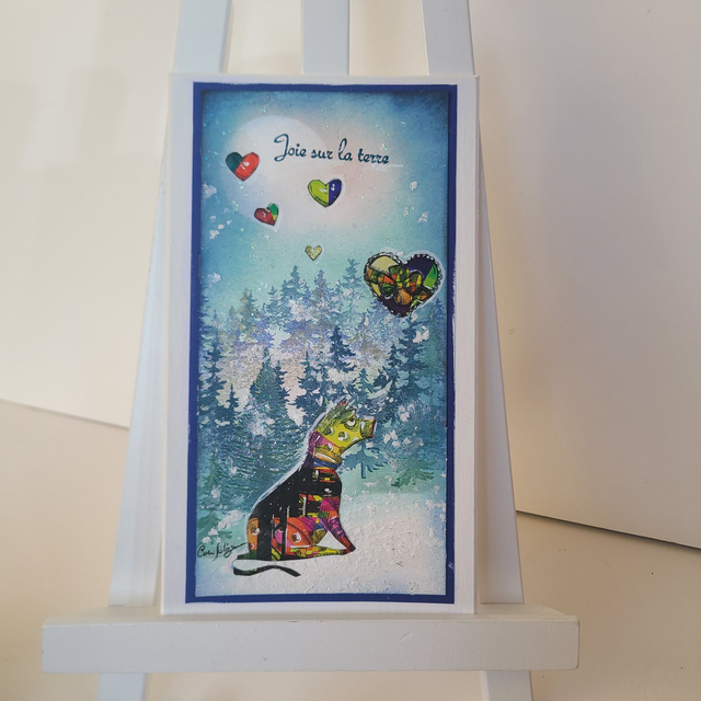 Grande carte festive, montée sur support de passe-partout épais, prête à accrocher en décoration de Noël...