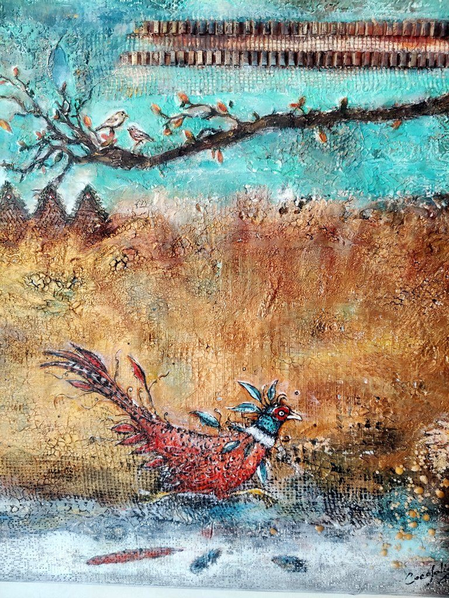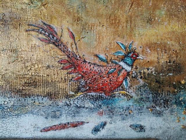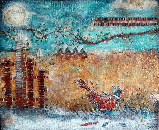 "Rêve d'un faisan au clair de lune". Ou l'aventure d'un faisan affamé, prêt à braver la solitude, un soir d'automne sous la lune...